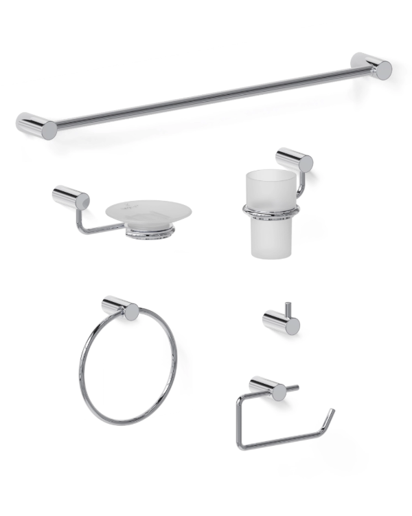 JABONERA, PERCHA, PORTA ROLLO, TOALLERO Aro, TOALLERO BARRAL 50 cm, VASO Y PORTAVASO