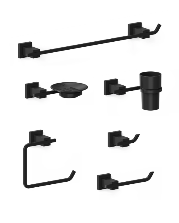 JABONERA, PERCHA, PORTA ROLLO, TOALLERO ESTRIBO, TOALLERO BARRAL 40 cm, VASO Y PORTAVASO