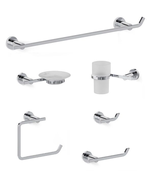 JABONERA, PERCHA, PORTA ROLLO, TOALLERO ESTRIBO, TOALLERO BARRAL 50 cm, VASO Y PORTAVASO