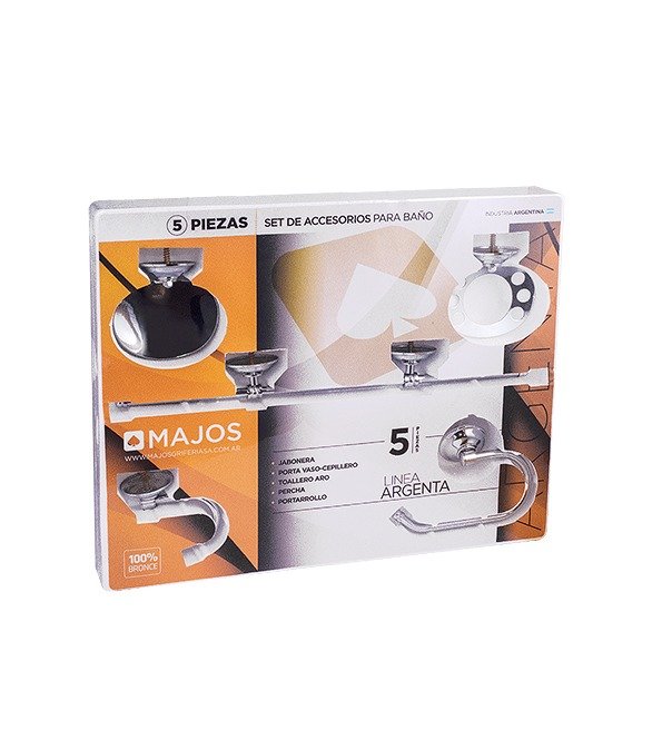 JABONERA X2 / PORTA VASO-CEPILLERO / BARRAL TOALLERO / TOALLERO ARO / PERCHA / PORTAROLLO.