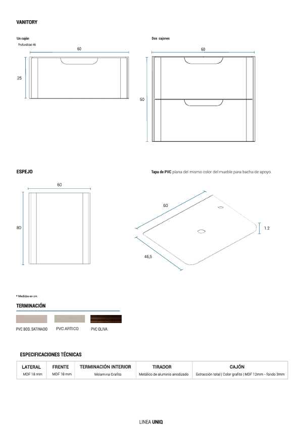 Vanitory colgante. Con 1 o 2 cajones cierre suave.